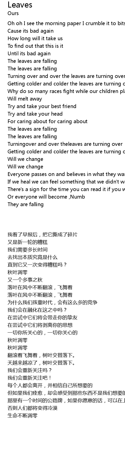| [00:50.00] | Turning over and over the leaves are turning over |