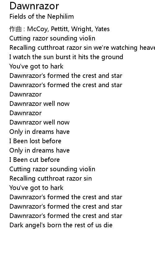 | Recalling cutthroat razor sin we' re watching heaven as the sun goes down | |