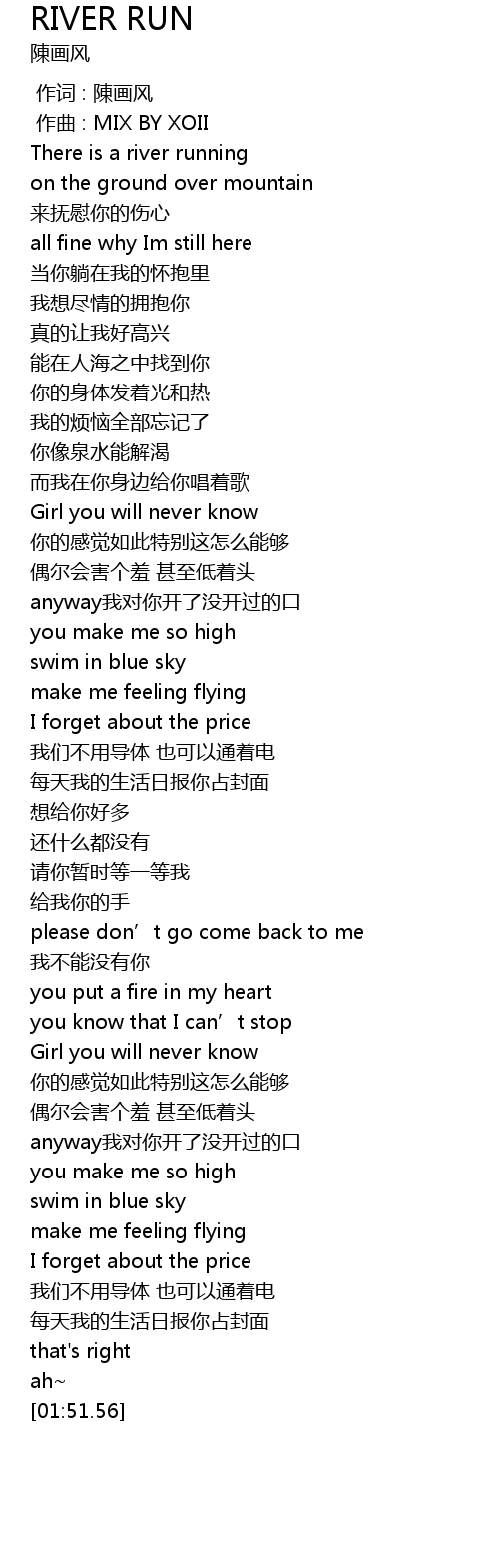 | [00:10.36] | There is a river running |