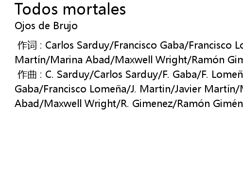 | [00:00.000] | 作词 : Carlos Sarduy/Francisco Gaba/Francisco Lomeña/Javier Martín/Marina Abad/Maxwell Wright/Ramón Giménez/Xavier Turull |