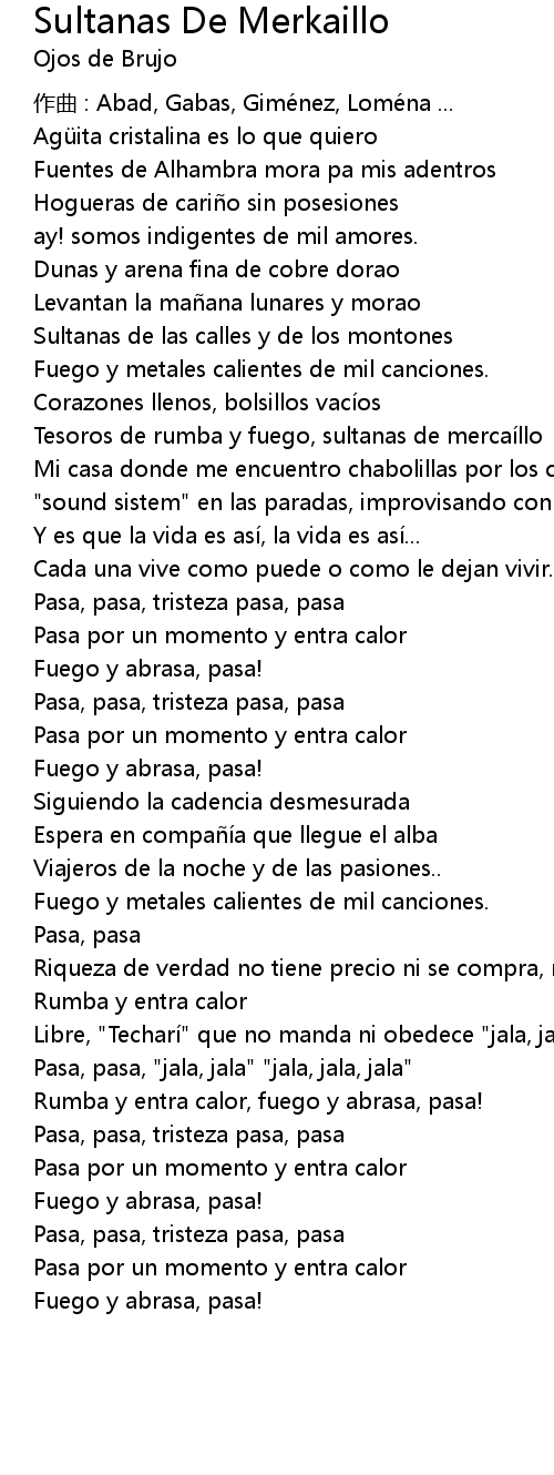 | Pasa, pasa, " jala, jala" " jala, jala, jala" | |