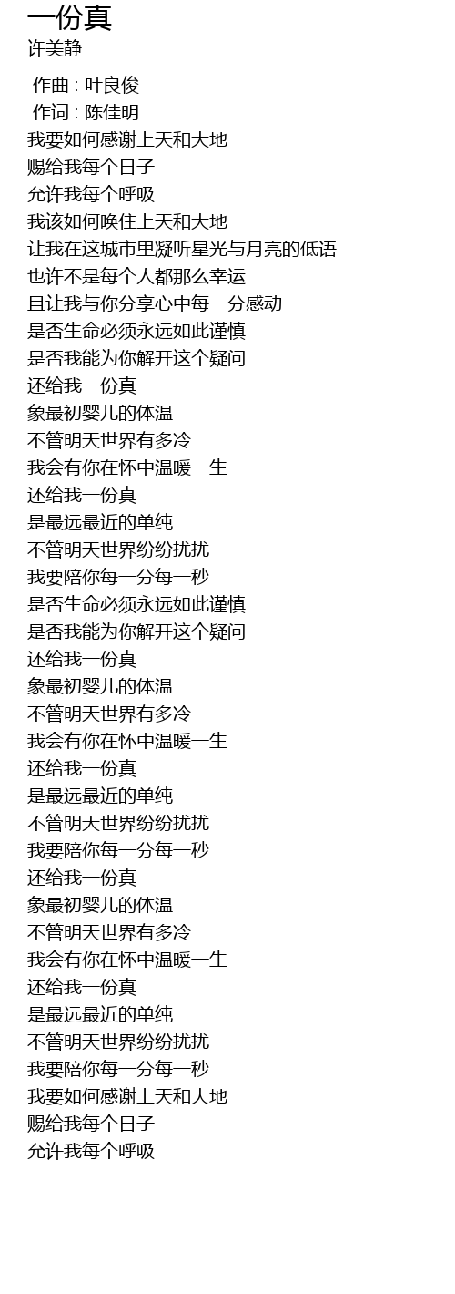 [01:25.600] huán gěi wǒ yī fèn zhēn