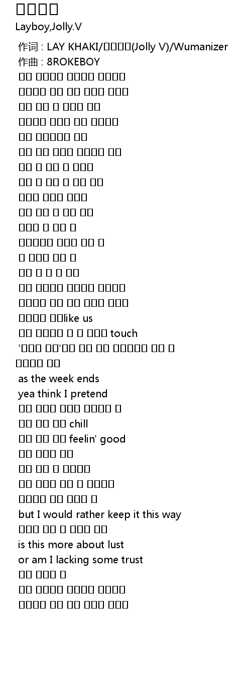 | [00:00.000] | 作词 : LAY KHAKI/졸리브이(Jolly V)/Wumanizer |