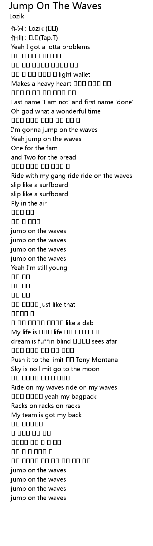 | [00:44.305] | I' m gonna jump on the waves |