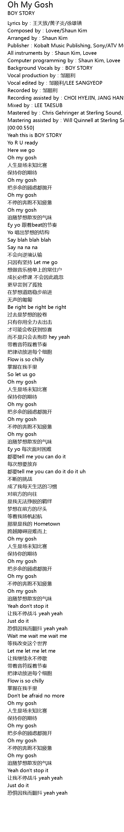 | [00:00.250] | Vocal production by:邹顺利 |