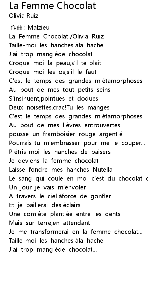 | [00:08.501] | La Femme Chocolat Olivia Ruiz |