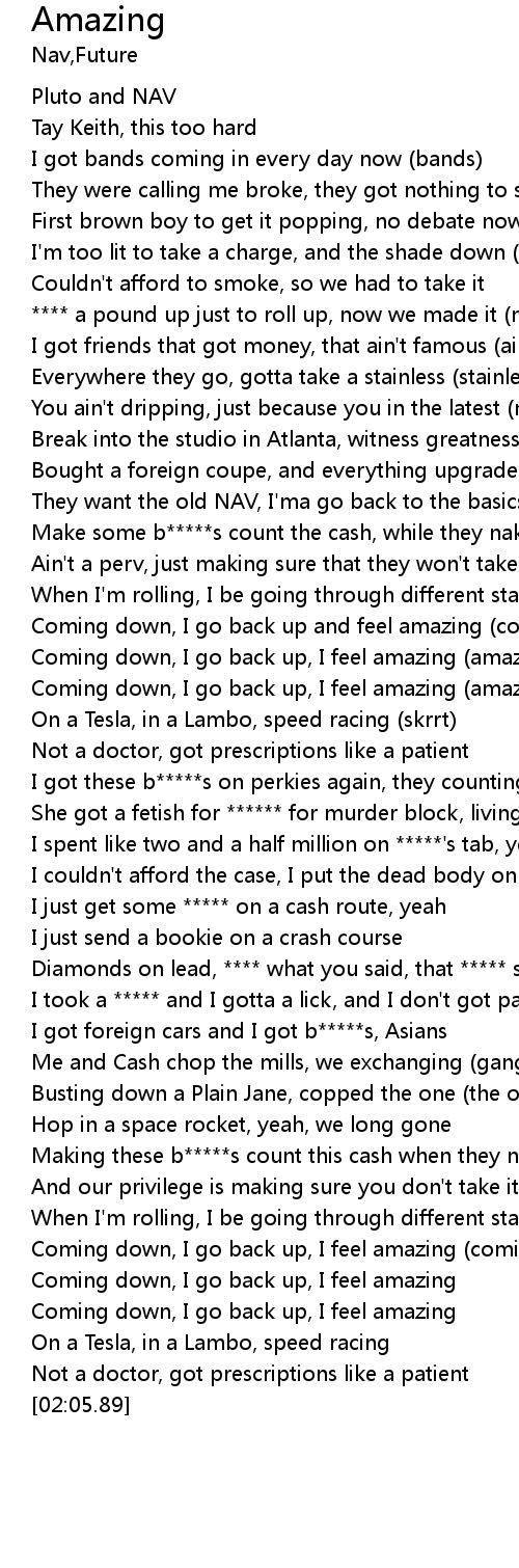 | [01:41.43] | Making these b*****s count this cash when they naked (cash) |
