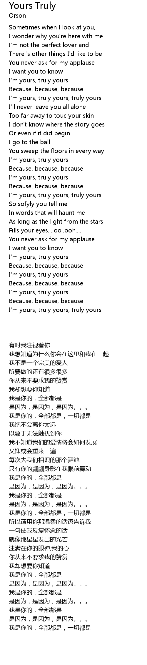 | [03:54.860] | I'm yours, truly yours, truly yours |