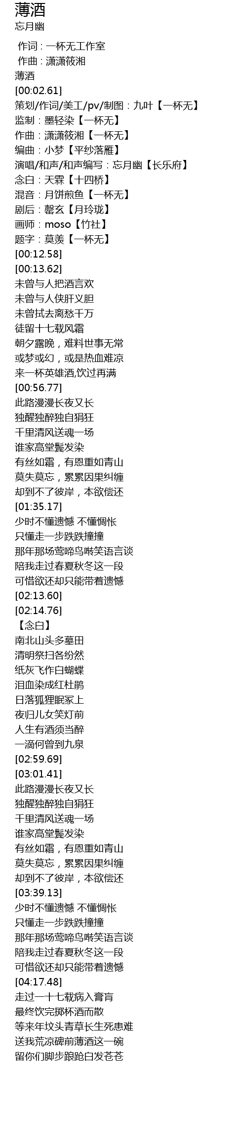 | [00:07.14] | 演唱/和声/和声编写:忘月幽【长乐府】 |