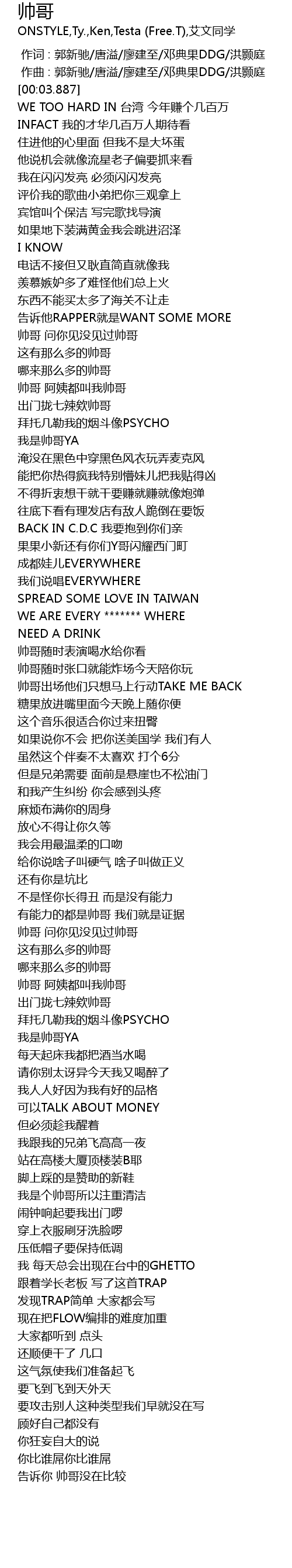 | [00:47.613] | shuài gē wèn nǐ jiàn méi jiàn guò shuài gē |