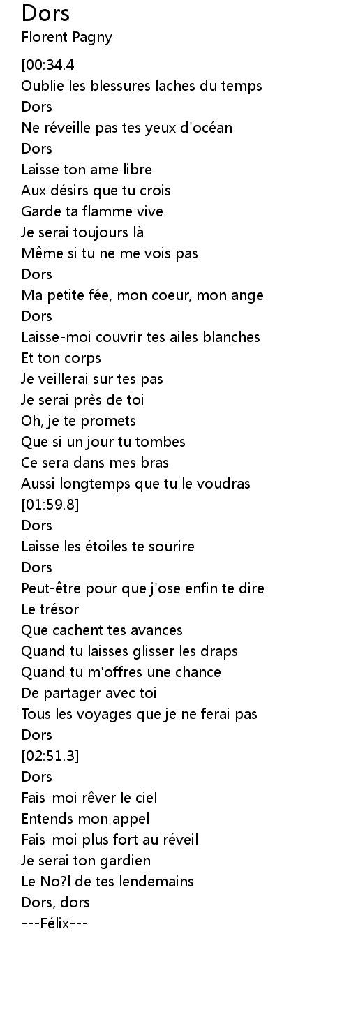 | [00:46.4] | Ne re veille pas tes yeux d' oce an |