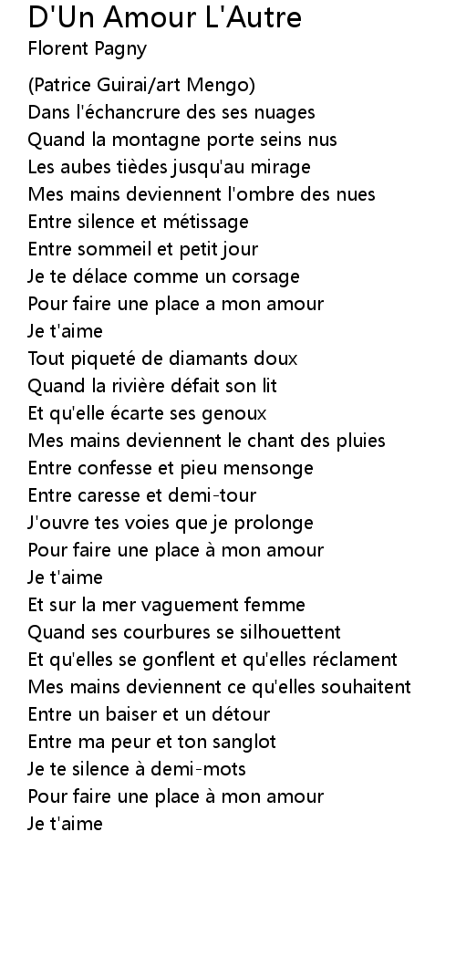 | Song | D'Un Amour L'Autre |