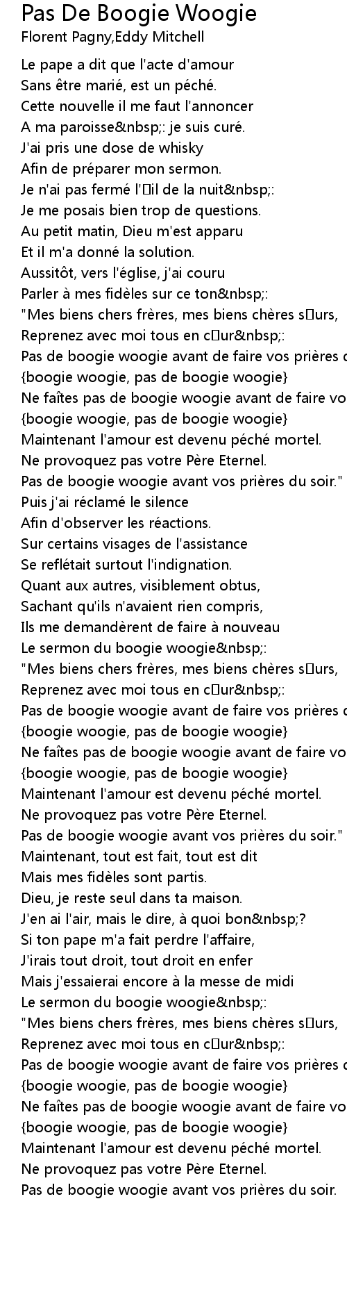 | Ne fa tes pas de boogie woogie avant de faire vos prie res du soir. | |