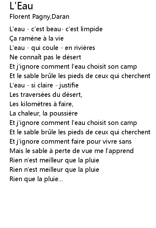 | L' eau c' est beau c' est limpide | |