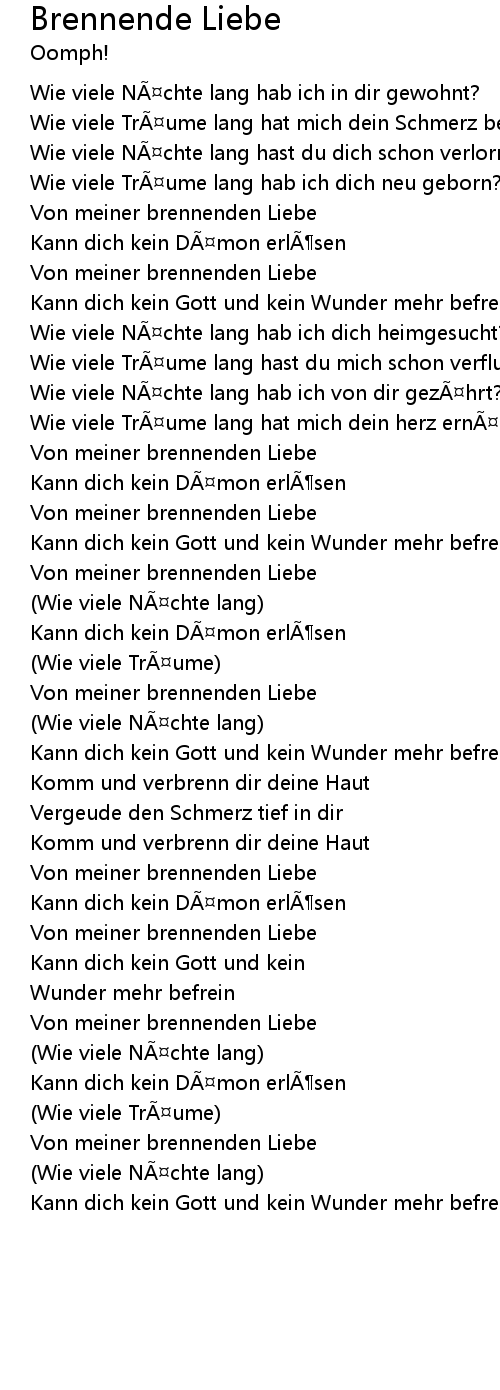 | Song | Brennende Liebe |