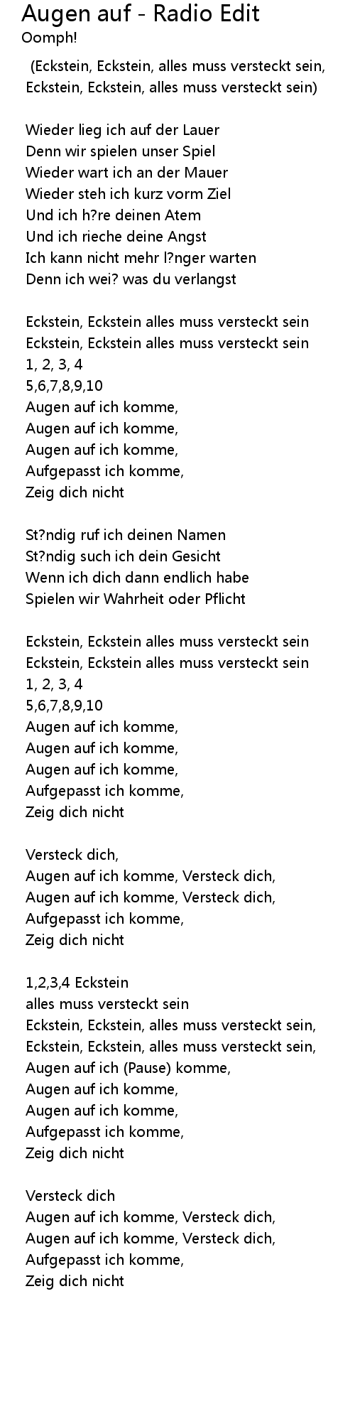 | Eckstein, Eckstein, alles muss versteckt sein) | |