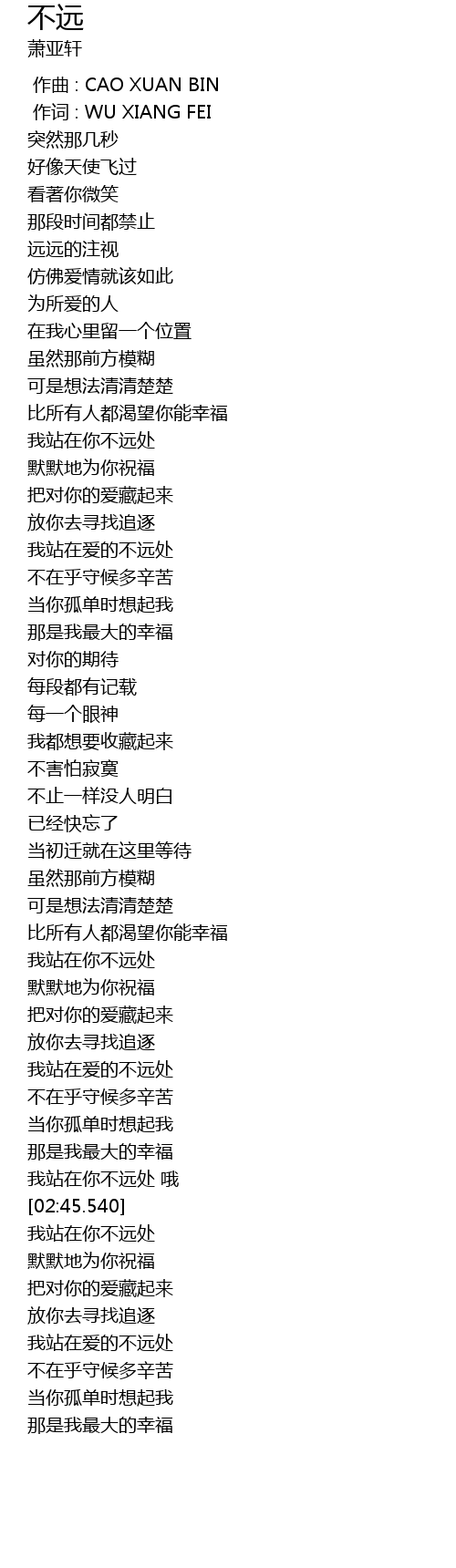 | [02:39.240] | wǒ zhàn zài nǐ bù yuǎn chù ó |