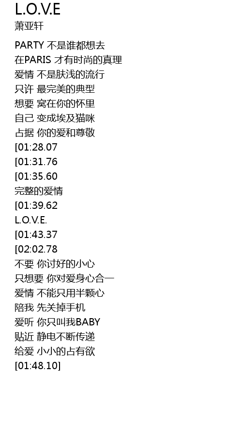| [00:38.04][01:31.76] | L.O.V.E. L.O.V.E. |