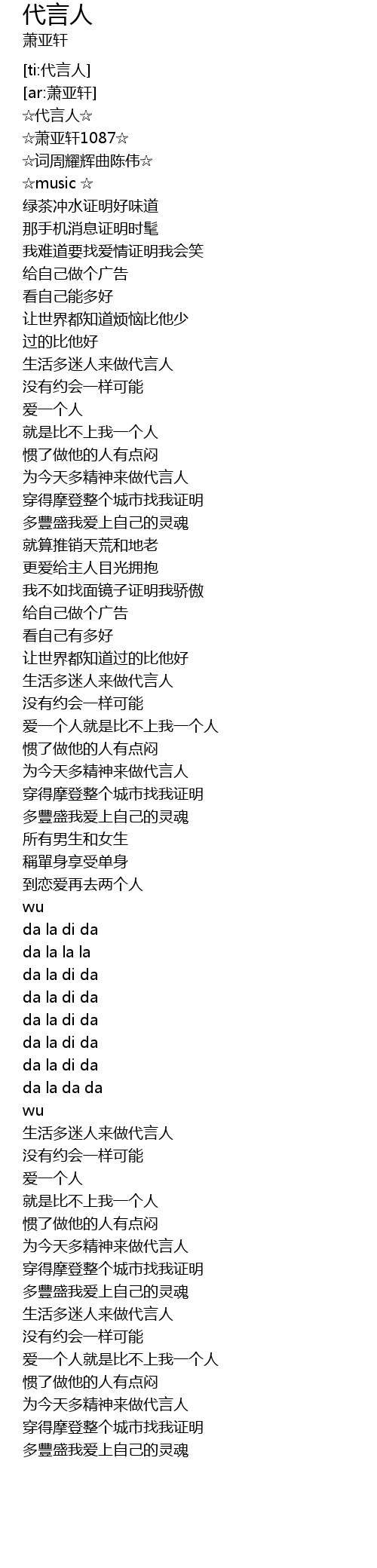 | [00:43.830] | gěi zì jǐ zuò gè guǎng gào |