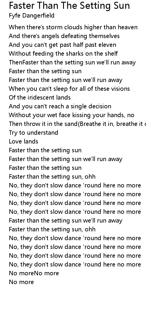 Faster than the setting sun, ohh |