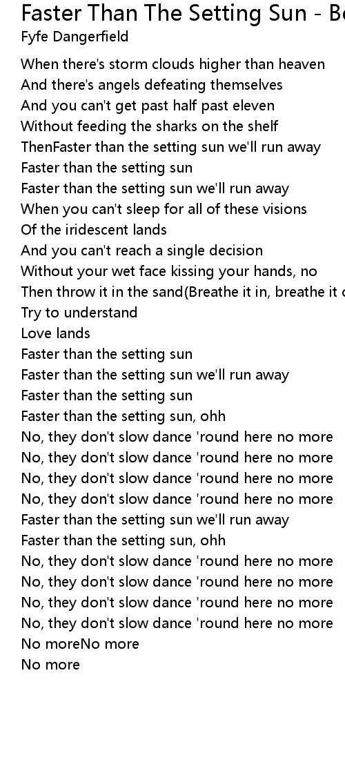 Faster than the setting sun, ohh |