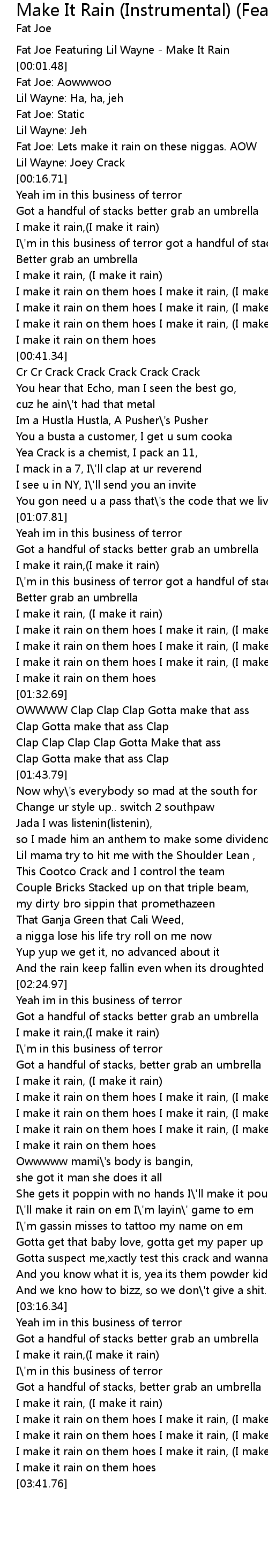 Fat Joe Featuring Lil Wayne - Make It Rain |