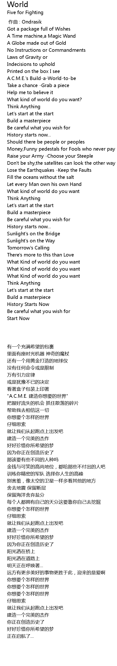 | Song | World |