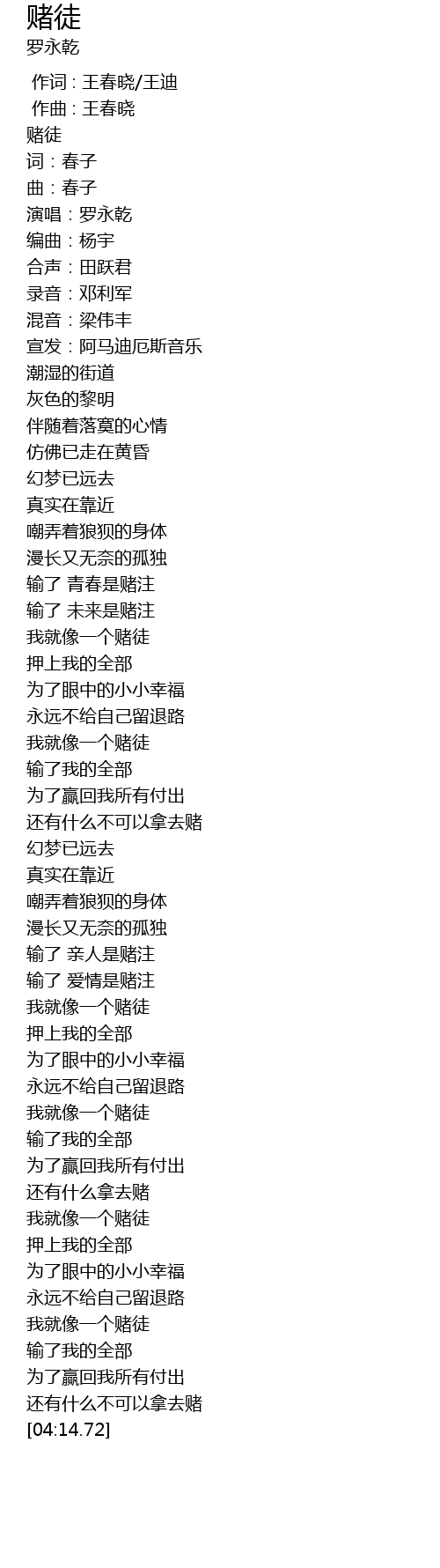 | [03:59.46] | 还有什么不可以拿去赌 |