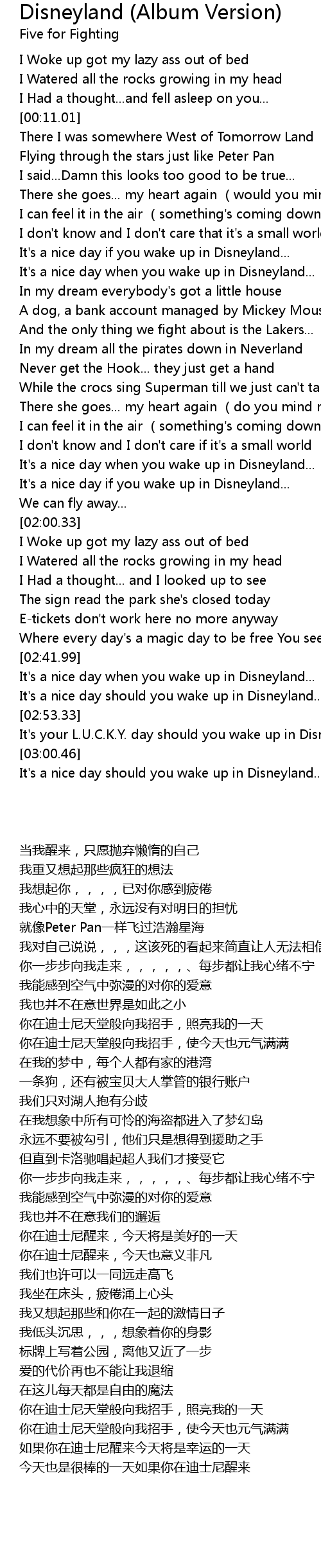 | [00:46.14] | It' s a nice day if you wake up in Disneyland... |