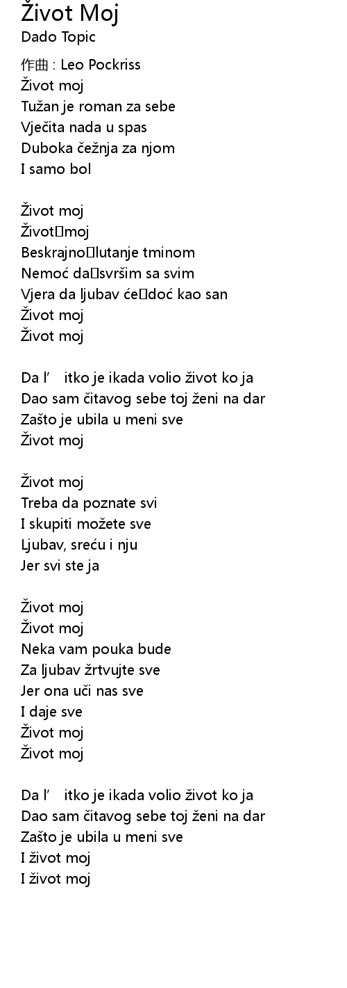 | Song | Život Moj |
