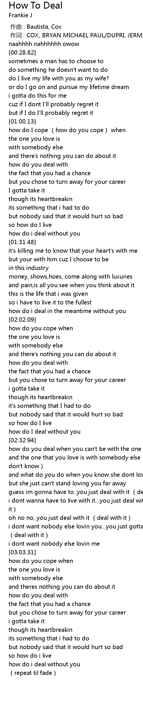 | [02:51.15] | i dont wanna have to live with it...you just deal with it (deal with it) |