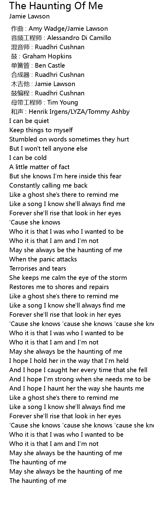 | [02:09.63] | And I hope I haunt her the way she haunts me |