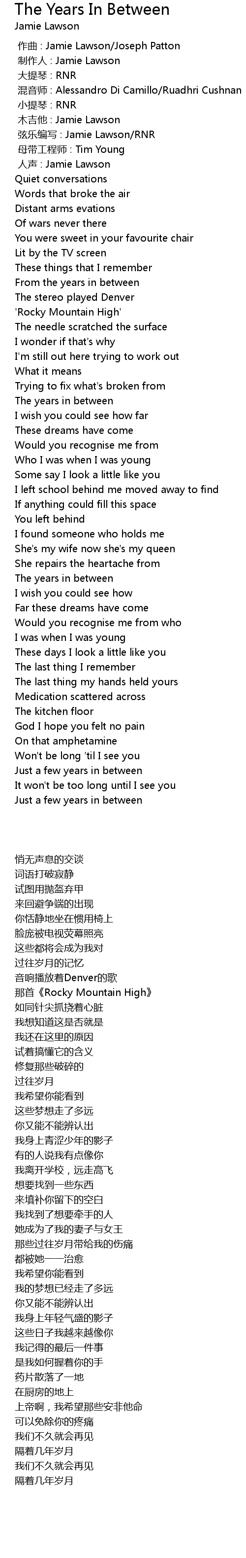| [00:08.000] | rén shēng : Jamie Lawson |