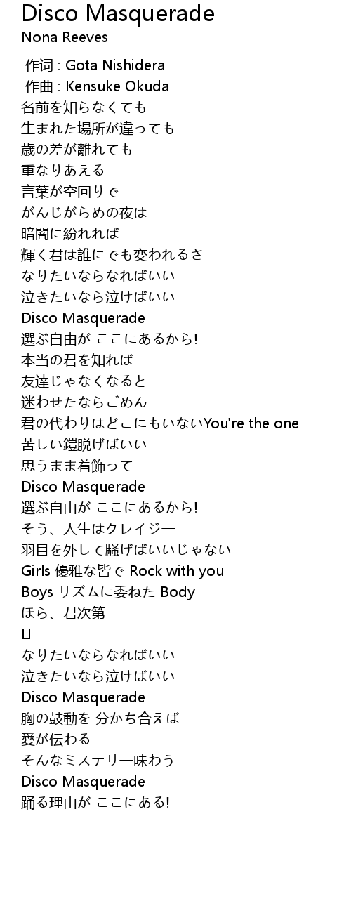 | [01:36.000] | Disco Masquerade |