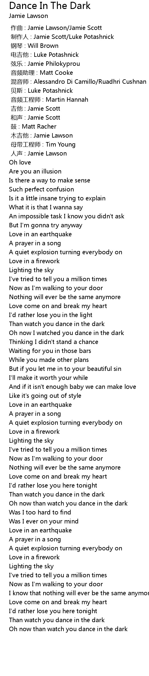 | [03:27.89] | Oh now than watch you dance in the dark |