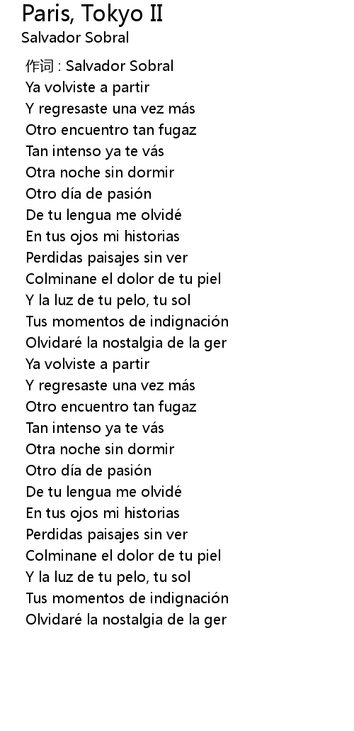 | [00:00.000] | zuo ci : Salvador Sobral |