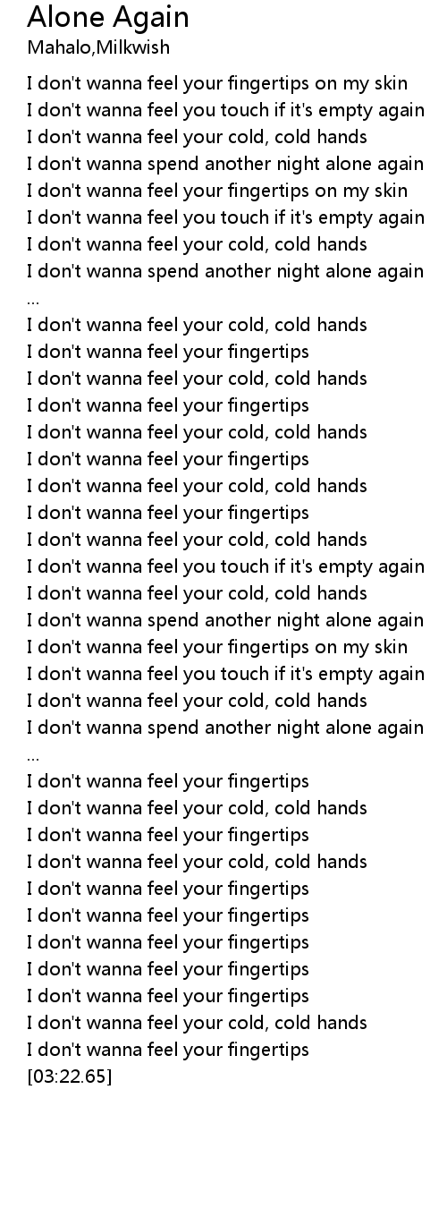 | [01:23.72] | I don't wanna feel your cold, cold hands |