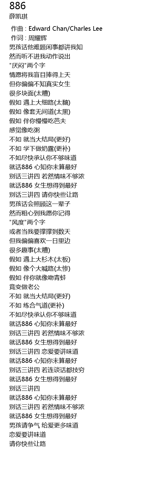 | [02:35.790] | 就话886 心知你未算最好 |