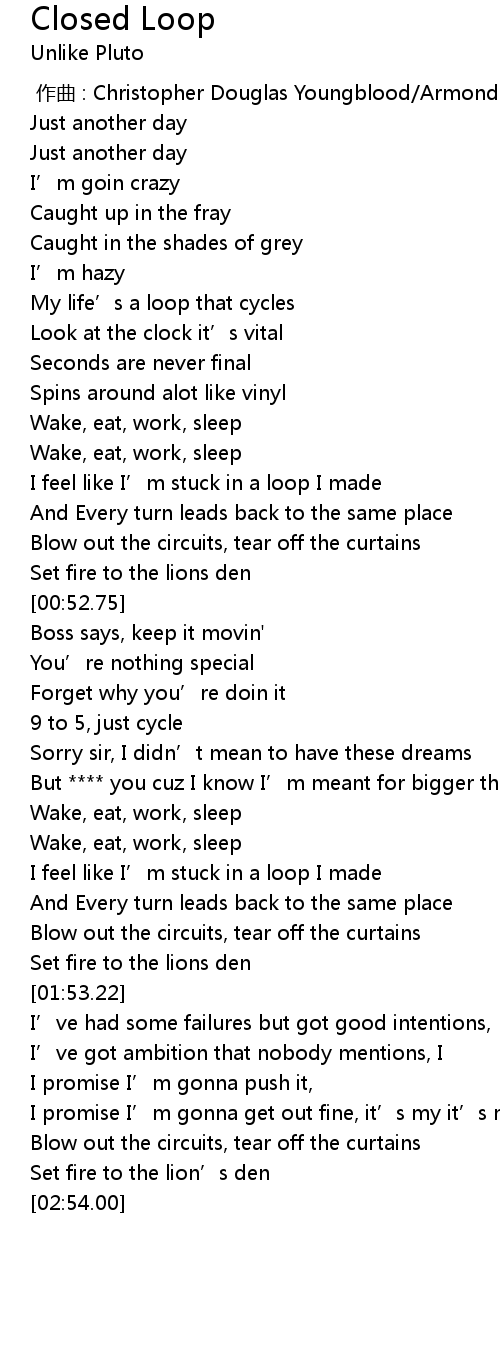 | [01:33.60] | I feel like I’m stuck in a loop I made |