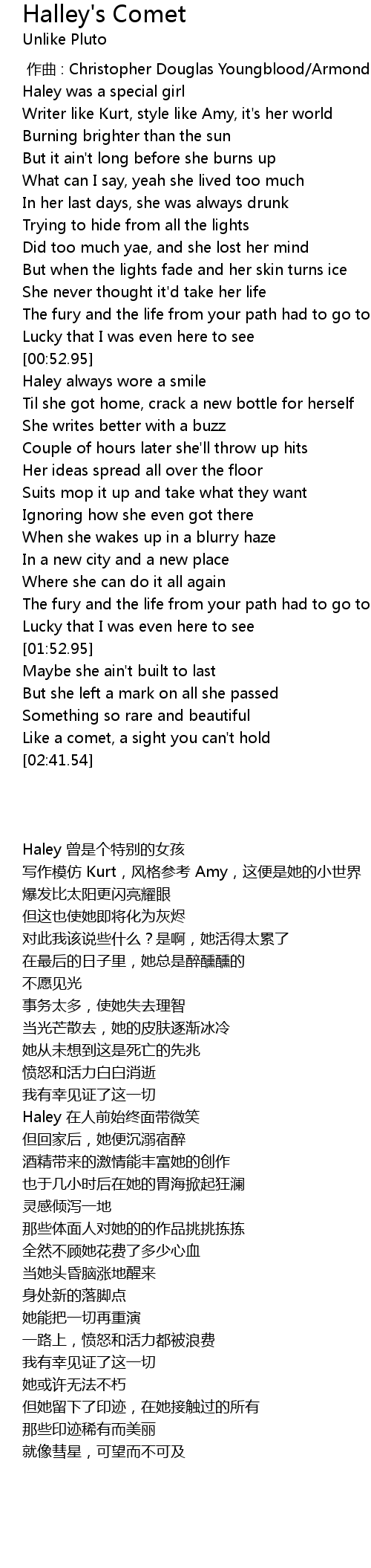 | Song | Halley's Comet |