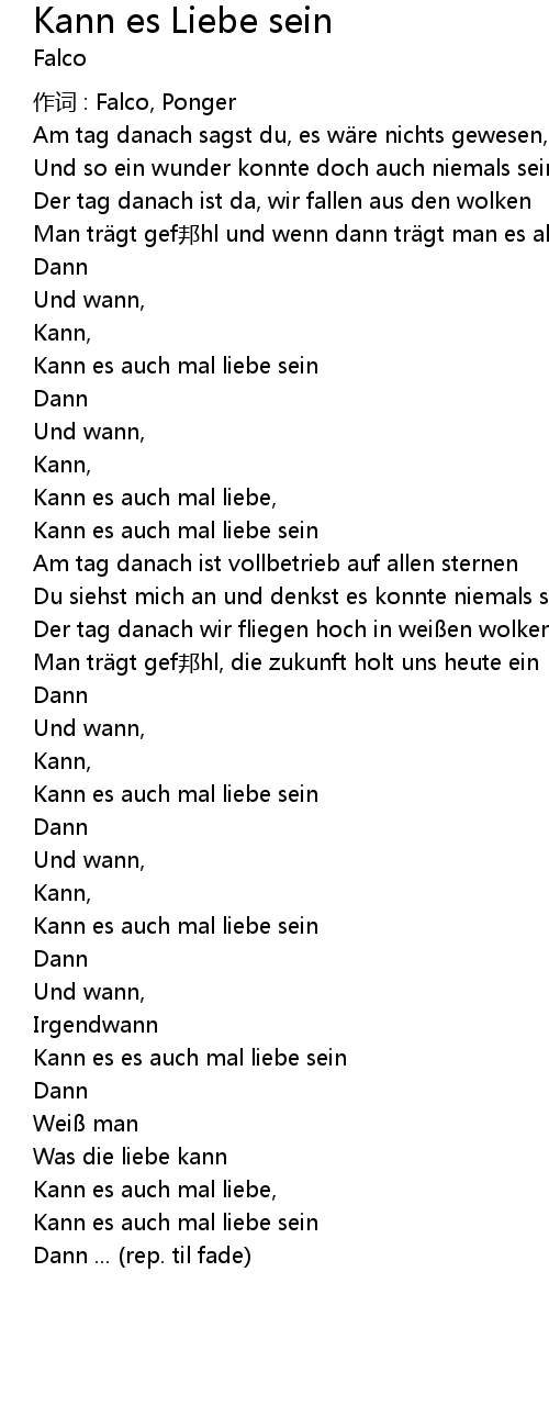 | Am tag danach sagst du, es wäre nichts gewesen, | |