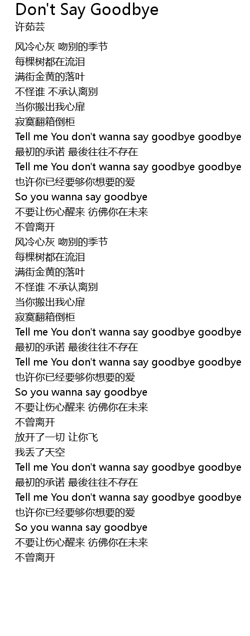 | [00:53.67] | Tell me You don't wanna say goodbye goodbye |
