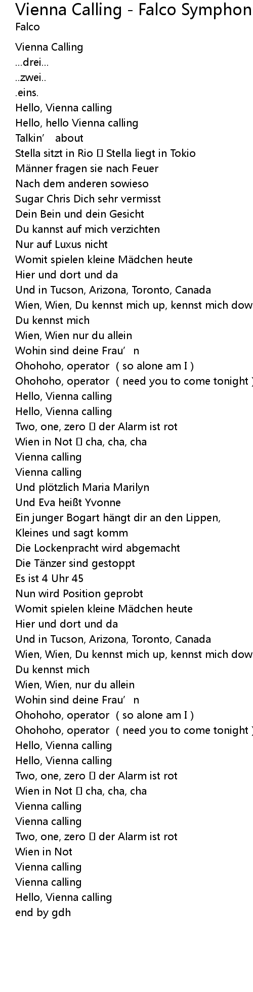 | [00:32.26] | Hello, hello Vienna calling |