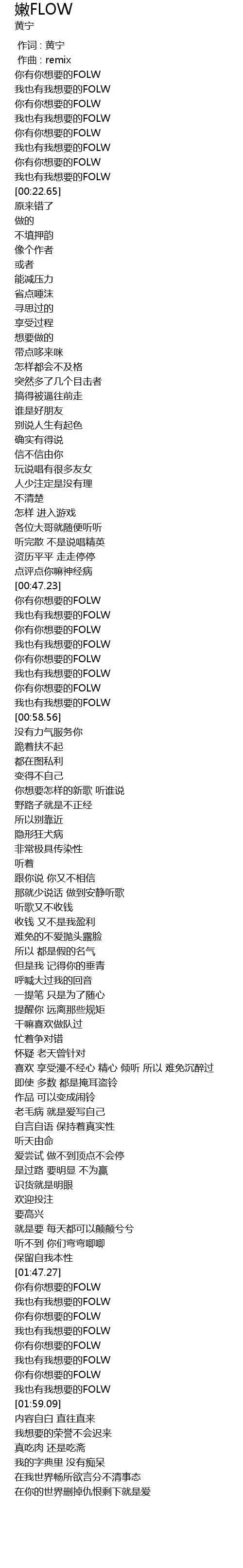 | [01:56.65] | nǐ yǒu nǐ xiǎng yào de FOLW |