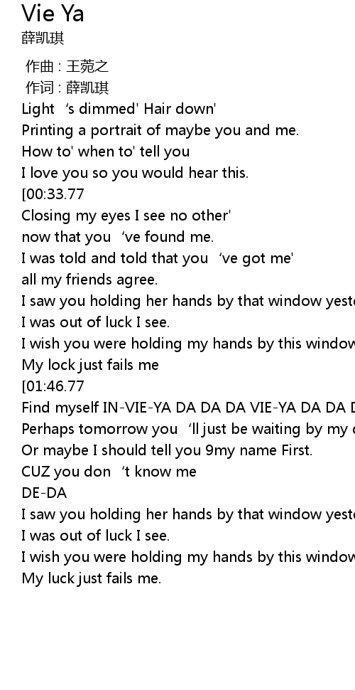 [00:01.00] 作词 : 薛凯琪