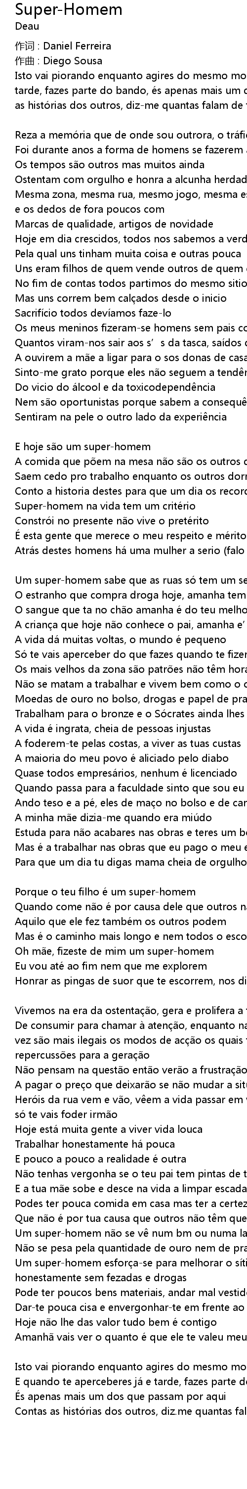 | Um superhomem esfor ase para melhorar o si tio onde acordas, trabalha honestamente sem fezadas e drogas | |