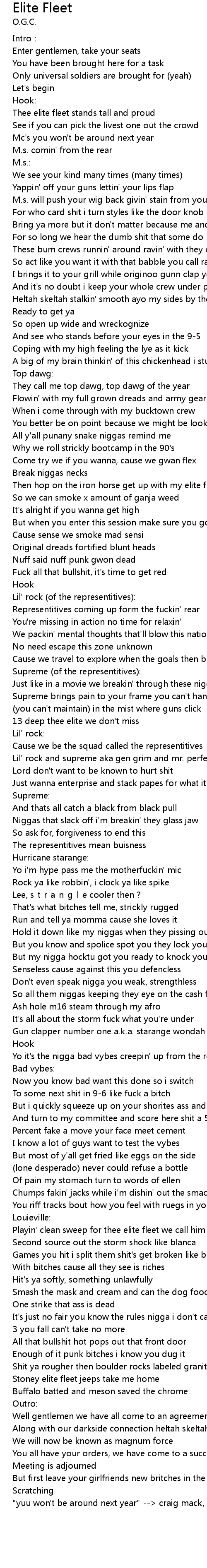 | M.s. will push your wig back givin' stain from your shit crack | |