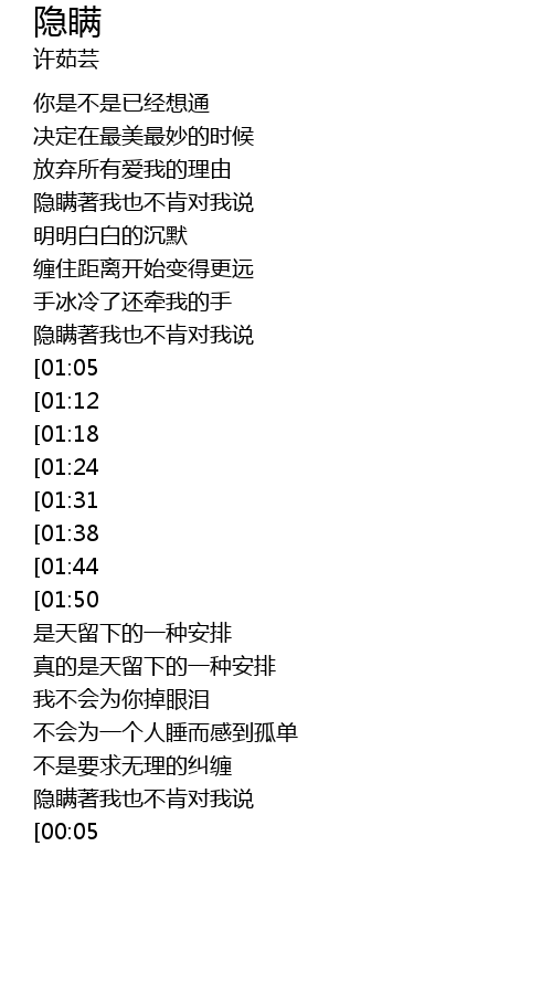 | [00:58] | 隐瞒著我也不肯对我说 |
