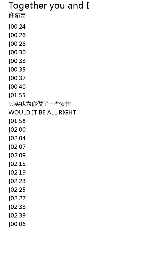 | [03:52][02:39][01:26] | TOGETHER YOU AND I |