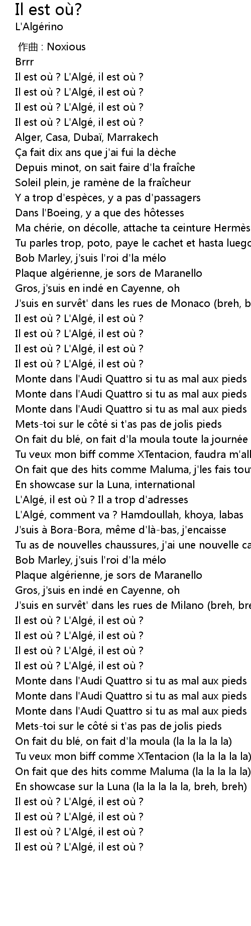 | Song | Il est où? |